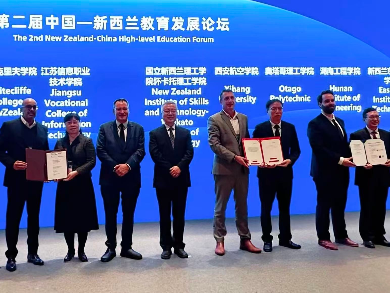 10月30日,学校应邀参加第二届中国-新西兰教育发展平行论坛。该论坛由中国教育国际交流协会秘书长杨军主持,中国教育部副部长任友群,新西兰教育部部长沙恩·雷蒂(Shane Reti)出席并致辞,就深化中新教育合作达成广泛共识。在论坛过程中,任友群副部长,沙恩·雷蒂(Shane Reti)部长共同见证下,我校校长蒲永平、新西兰怀卡托理工学院校长沃里克・皮茨(Warwick Pitts)与其他中新合作院校共同展示双方中外合作办学协议。
