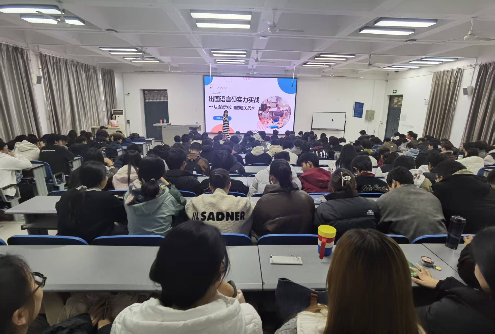 此外,访学项目宣讲会还特邀往期项目优秀参与学生做交流发言。他们通过播放生活纪实短片,分享在外生活学习故事等形式,讲述了项目参与的经历与心得,以亲历者的视角,使同学们对海外访学项目有了更加深入的了解。